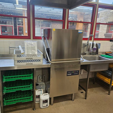 Delivered and installed the next day. To remain cost-effective for the school, the existing tabling was reused where possible. Adjustable feet were replaced to ensure the dishwasher sat correctly on the tabling, and the inlet tabling trap was renewed due to a leak.